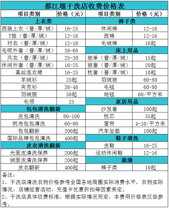 都江堰干洗店收費價格表【詳細收費標準】怎么收費更賺錢