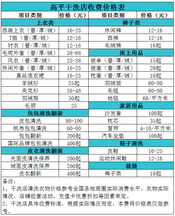 高平干洗店收費價格表【詳細收費標準】怎么收費更賺錢