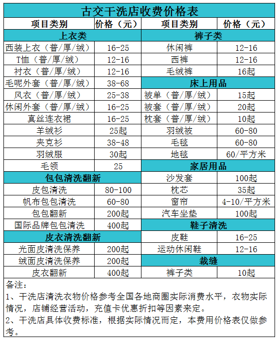 古交干洗店收費價格表【詳細收費標準】怎么收費更賺錢