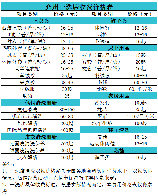 兗州干洗店收費價格表【詳細收費標準】怎么收費更賺錢